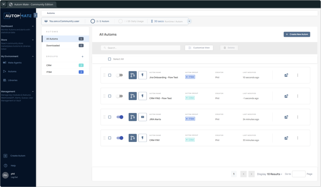 Autom Mate Community Edition is a free, cloud-based version of our powerful automation platform.