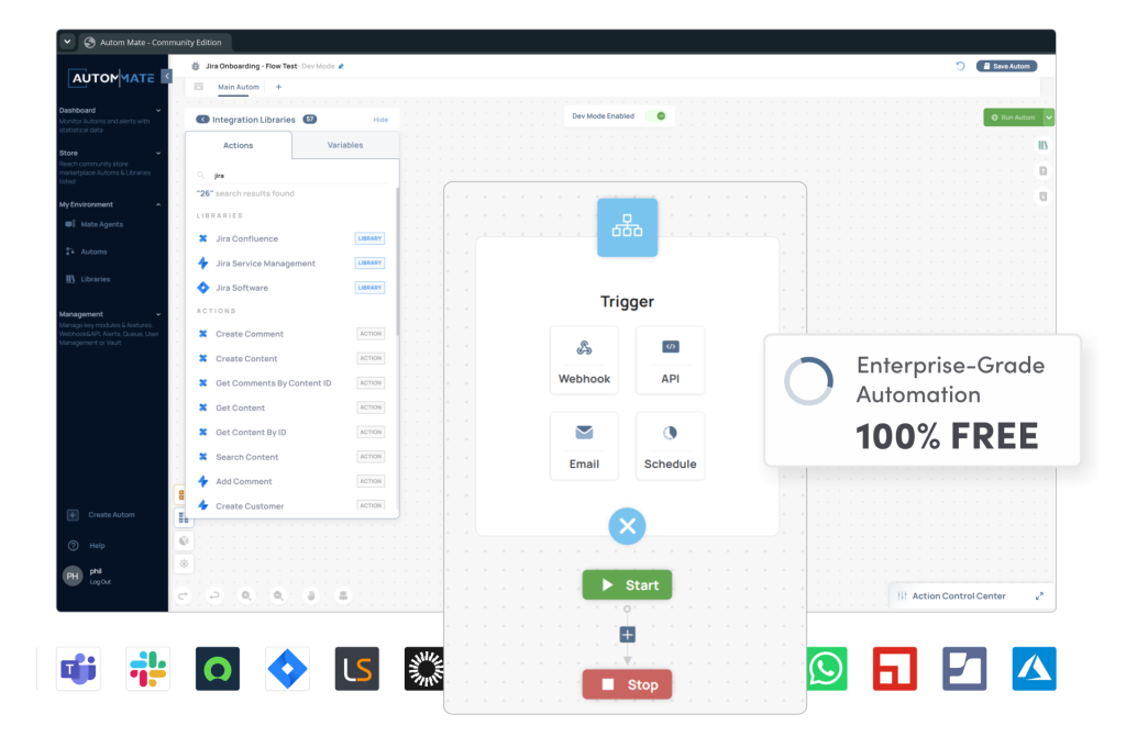 Designed for individuals, hobbyists, and small teams, Autom Mate Community Edition makes automation accessible to everyone with no strings attached. It provides a safe, streamlined entry point into the world of automation. With its intuitive interface, built-in guardrails, and guided experience, users can confidently experiment with workflows, discover new efficiencies, and scale their knowledge.