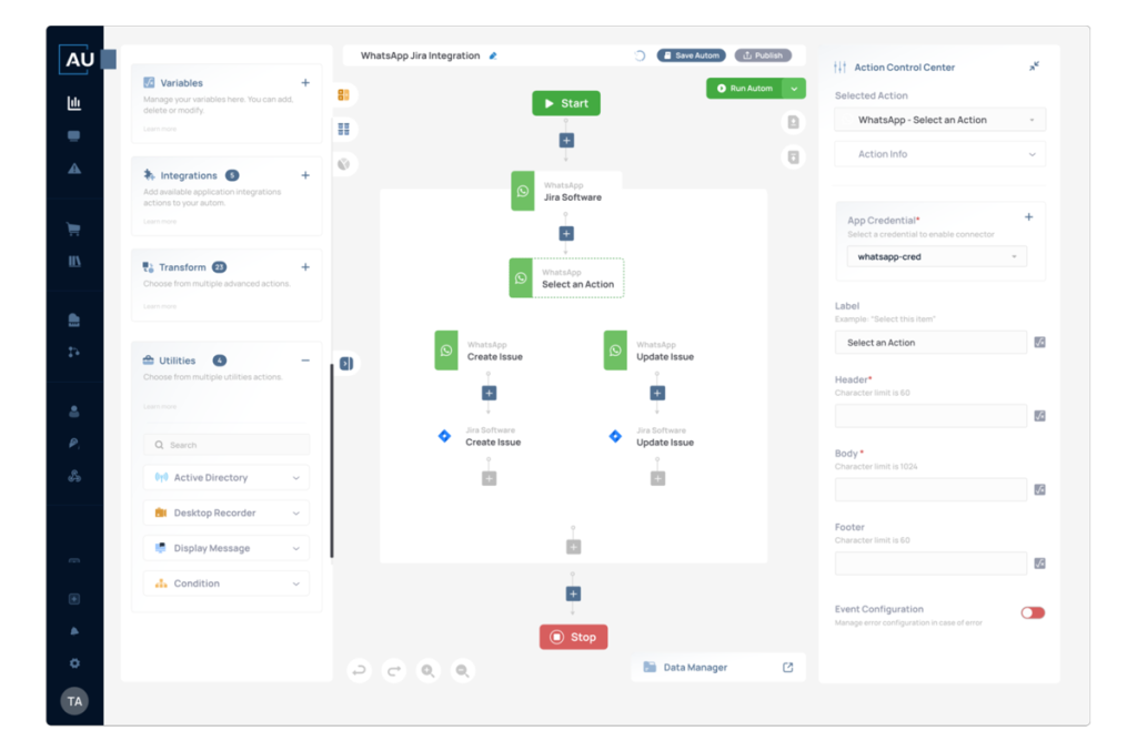 Autom Mate Enterprise Edition provides users with the ability to compose and orchestrate advanced AI Agents. Combine specialized agents into hyperflows, coordinated networks that weave your entire IT ecosystem into a single orchestration fabric. Learn more about Agent Composer here.