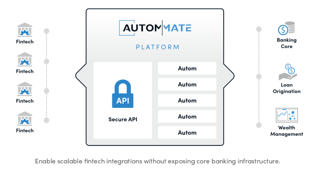 Autom Mate acts as a secure orchestration and automation platform that sits between fintech partners and internal banking systems.The platform provides: